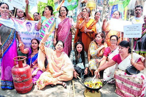 "The Centre had been continuously raising prices of essential commodities, including LPG cylinders. People are struggling to make ends meet. So today we hit the streets to protest against the anti-people policies of the BJP government," said Shahnaz Haque, president of the state Mahila Congress.