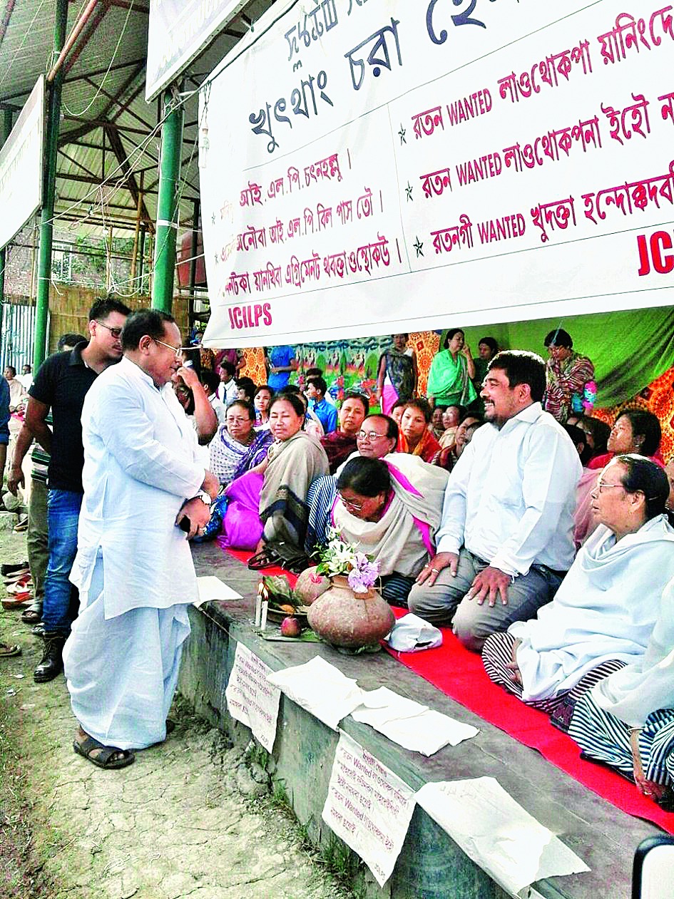 Ratan sat along with women activists and students at Keishampat where the relay hunger strike is being conducted daily since last month, denouncing the "wanted" tag on Ratan and also in support of legislations like the inner-line permit.