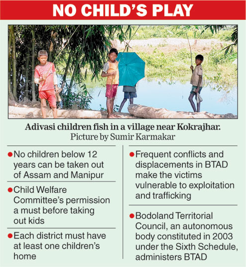 According to Assam government officials here, nearly 1,000 children from the BTAD have been "trafficked" since 1996. The issue was discussed during a consultation on adolescents and child rights in the BTAD, here on October 25 and 26. It was organised by the Northeast Society for the Promotion of Youth and Masses, a Guwahati-based NGO with the support of Unicef, Assam.