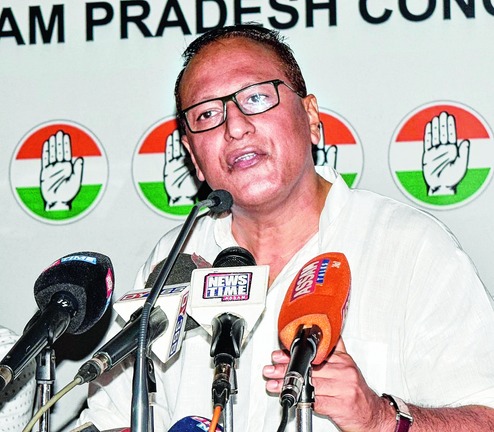 Pradyut Bordoloi addresses the news conference in Guwahati on Thursday. Picture by UB Photos