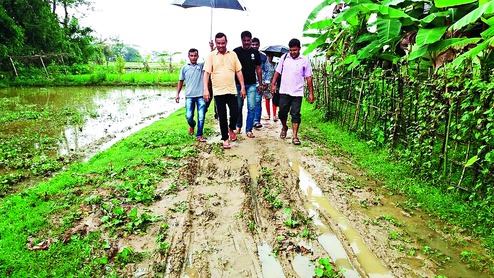 Nearly nine to 10 villages, having a population of 4,000 to 5,000, rely on the road for connectivity. Its foundation stone was laid by former minister Siddeque Ahmed around three years ago.