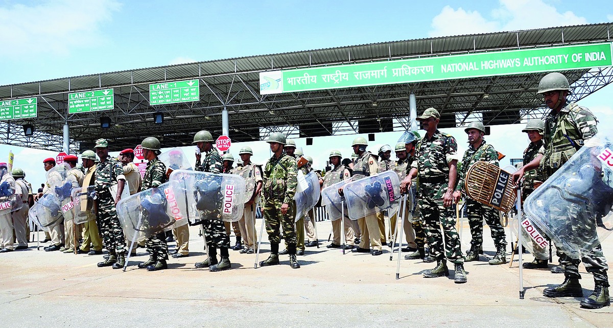 Hundreds of security personnel were deployed at the site on Wednesday, apparently apprehending a repeat of 2014, when protesters had demolished the infrastructure of the toll gate which had been commissioned that year.