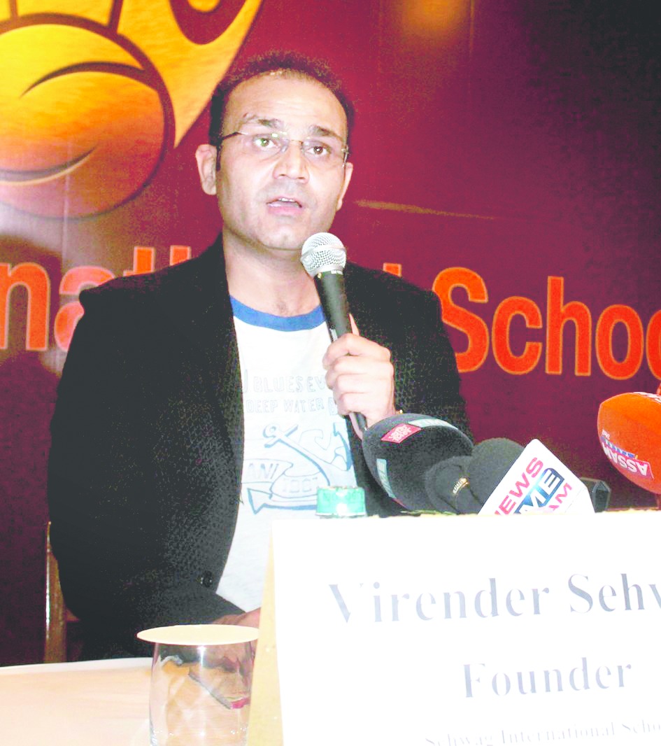 Sehwag was here this afternoon to promote his Jhajjar-based school in Haryana during a media interaction at India Club. He also interacted with about 50 children from different schools of the city. He was accompanied by leading national physical trainer and former Assam Ranji player Nishanta Bordoloi, the strength-and-conditioning adviser of SIS.