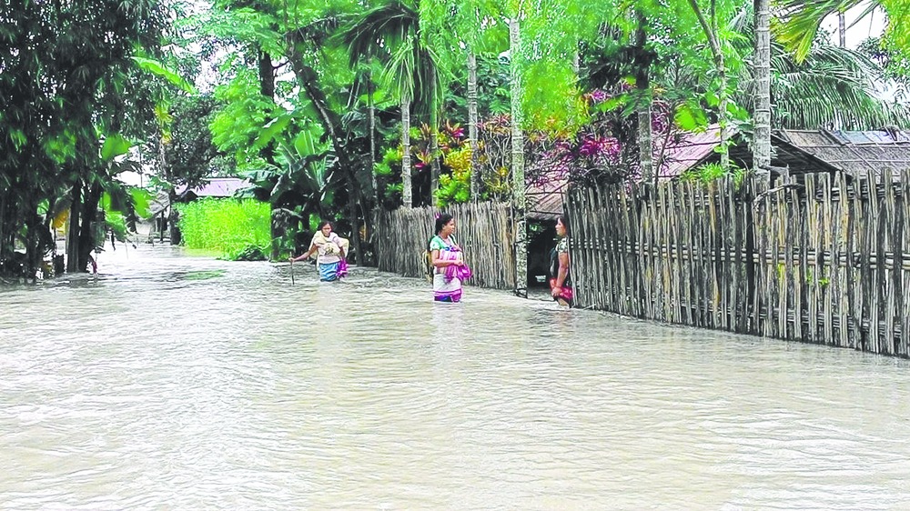The rising water level of major rivers - Sankosh, Sormanga, Gongia - and their tributaries have breached# many embankments in the district. The PWD blacktop road in the Charagaon area by Longa river via Umangar has been completely eroded by at least half a kilometre.