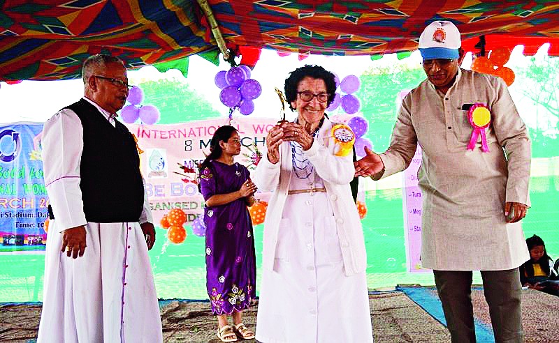 Tura, March 8: Missionary and social worker Sr Gaudalape was felicitated today on International Women's Day programme at Dikki Bandi stadium for her contribution to the Garo hills for the past 66 years.