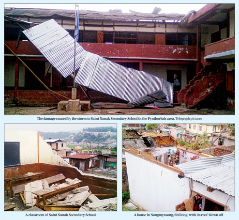 Around 1.30pm, Pynthor and Umpling areas here and Nongpathaw village in East Khasi Hills district were lashed by the storm. A visit to Pynthor and Nongmynsong revealed scenes of devastation: corrugated galvanised iron (CGI) sheets of several houses had been blown away by the gale.