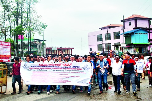 Itanagar, May 5: The All Arunachal Pradesh Students' Union (AAPSU) hit the streets here today seeking a governor in the state and directors at the North Eastern Regional Institute of Science and Technology (Nerist) and National Institute of Technology (NIT).