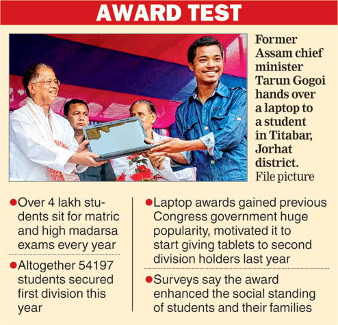 The erstwhile Congress government had introduced Anundoram Borooah Award Scheme in 2005 under which laptops were given to those who scored 60 per cent and above. Over 2.1 lakh first division holders have so far been awarded since.