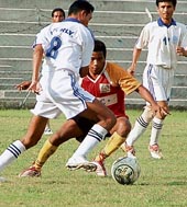 A moment from the relegation-group match of the Guwahati Sports Association’s 2nd Travel Smart-R.G. Baruah Trophy Super league football meet played between Sunrise Athletic Club and NF Railway at Nehru Stadium in Guwahati on Wednesday. Sunrise won the match 1-0. With the win, Sunrise finished second in the relegation group with 13 points from 10 matches. NF Railway SC were relegated from the elite rung, tallying only six points from 10 matches, to languish at the bottom of the table. Jewel Star Club will meet Assam Police Blues SC and Food Corporation of India SC will clash with Assam State Electricity Board SC on Thursday.