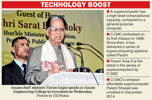 Assam chief minister Tarun Gogoi inaugurated the C-DAC & AEC Param Supercomputing Facility, a joint collaboration of the Centre for Development of Advanced Computing and the college.
