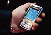 | The new Nokia N80 phone. (Below) A Motorola phone on display |