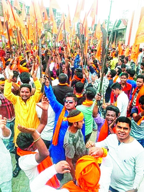 Chants of "Jai Shri Ram" rent the air during a rally taken out as part of the nationwide Utsav that began on April 4.