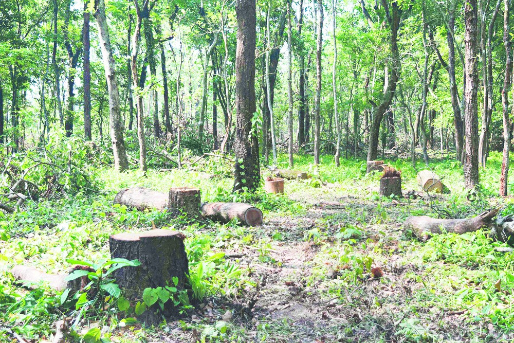 Sources said valuable sal trees are being felled every day and ferried in tractors and bullock carts under the very nose of the forest department, a few metres from the Nayekgaon forest range office.