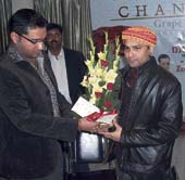 | The singer being felicitated in Guwahati recently |