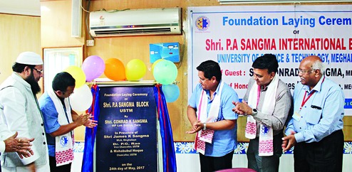 Tura, May 24: Tura MP Conrad K. Sangma and his brother and NPP leader James today laid the foundation stone of the PA Sangma International block at the University of Science and Technology Meghalaya (USTM) in Ri Bhoi district.