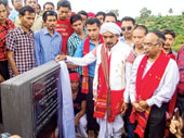 | R.H. Ronghang lays the foundation stone for the new village on Tuesday. Telegraph picture |