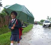 This child is happy to be on her way home from school in the drizzle at Miao in Arunachal Pradesh’s Changlang district on Monday. Picture by UB Photos