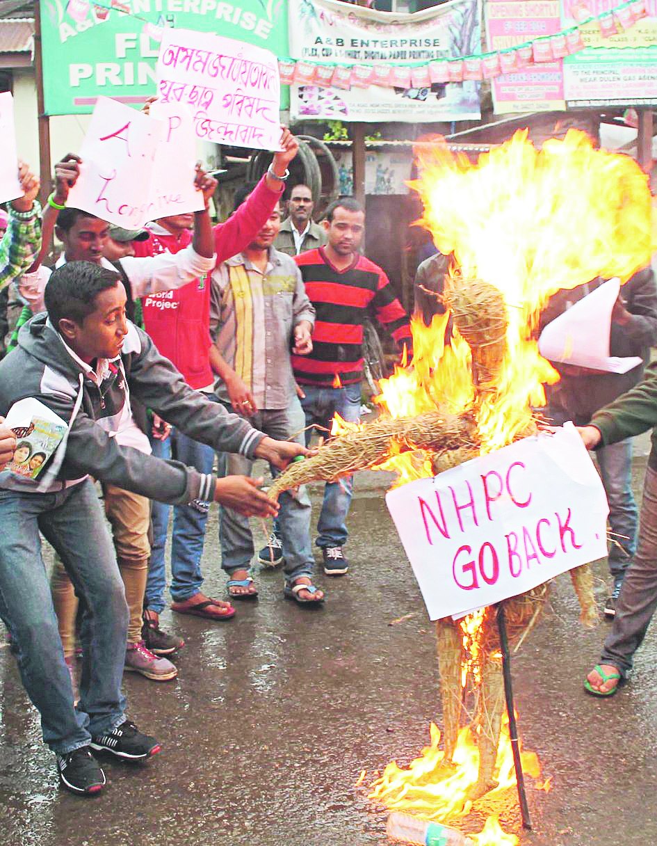 Pradip Sarma, president of Lakhimpur district of AJYCP, said, "We are not against development of the area, but we strongly oppose big dams. To lodge our protest, we burnt the VCD through which the NHPC tried to motivate the people to support it. It tried to convince them that the dam would not cause any damage to people in downstream areas."