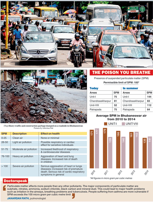 Senior environmental scientist of the pollution board D.K. Behera said suspended particles in the air during summer was usually low, but the situation here was alarming. He said rapid construction across the city and rising vehicular population had triggered the problem.