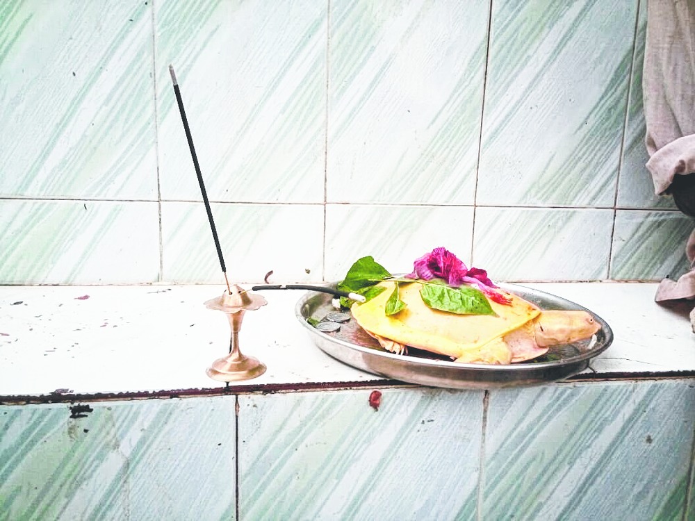 The freshwater turtle had strayed into a water body in Kora village within the limits of Kendrapra rural police station. Curious residents caught it alive. "Its unconventional look had prompted the people to believe that it was an embodiment of divinity. After placing it on the pedestal of the village deity, they started worshiping it," said forest range officer, Cuttack territorial forest division, Himanshu Sekhar Muduli.