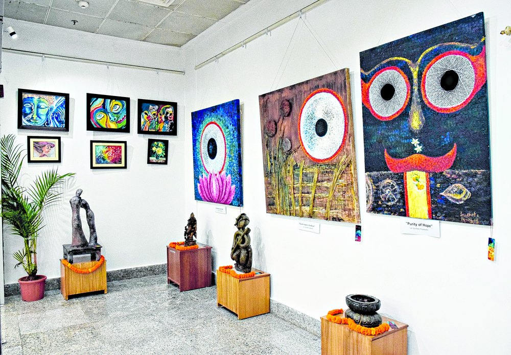The first show at the gallery displayed 18 creations of Sucheta and Amrita. The exhibition will continue for a fortnight. After that, new works will be displayed in the gallery. The AAI will keep 10 per cent of the proceeds, while 90 per cent would go to the artists.