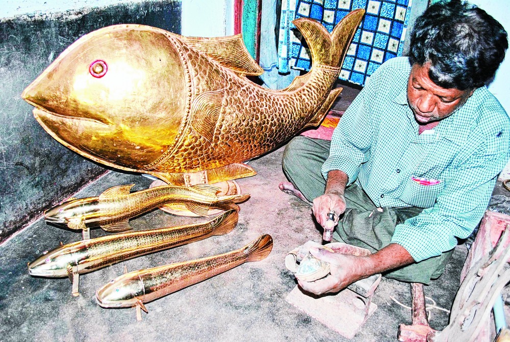 Most of the artisans of flexible brass fish have now switched to making brass statues of gods and goddesses for temples.