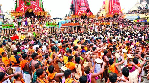 Puri, June 25: This holy town today turned into a sea of humanity as the presiding deities of the iconic Shree Jagannath temple Lord Jagannath, brother Balabhadra and sister Subhadra commenced their chariot journey towards Sri Gundicha, the temple dedicated to their aunt, for a nine-day sojourn.