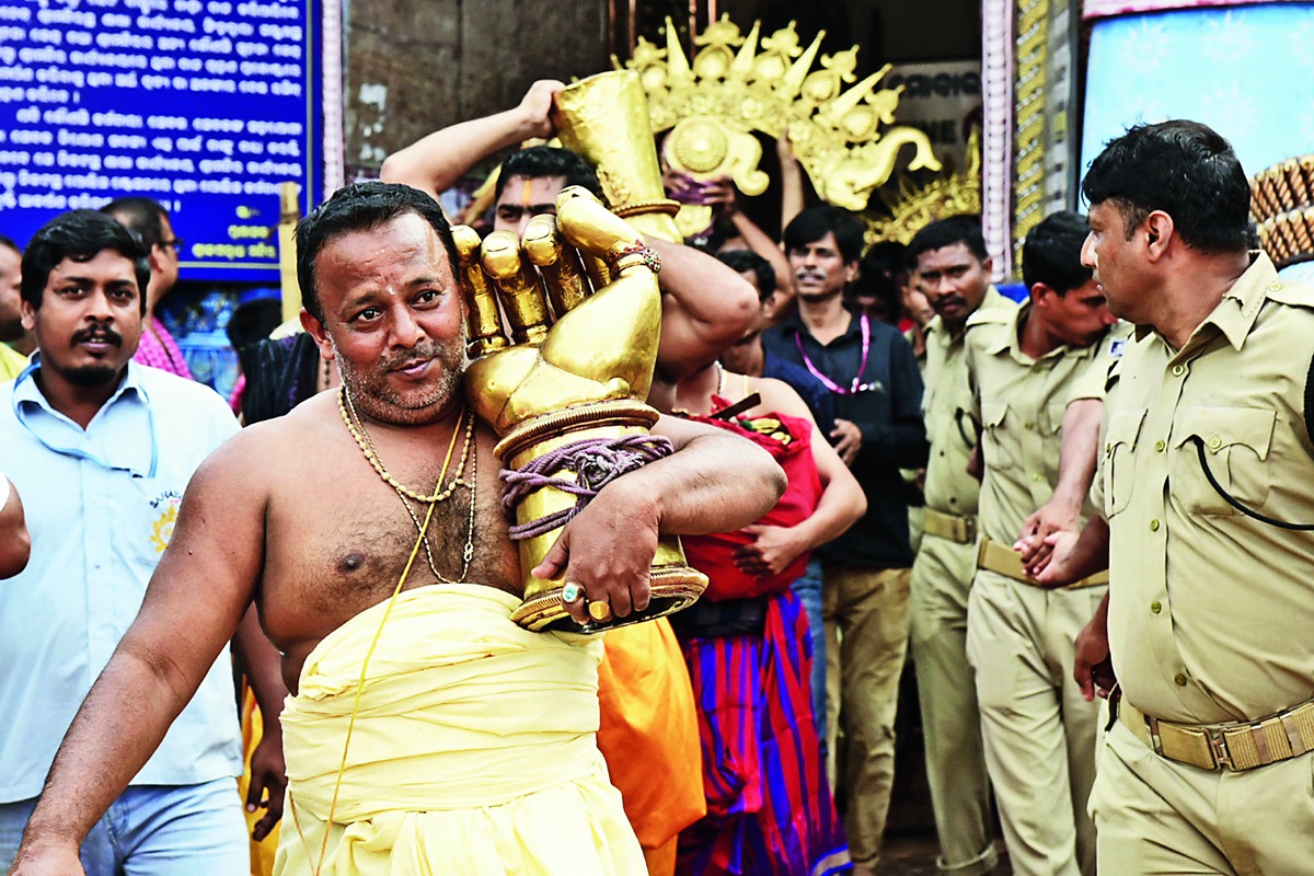 Nearly 138 kinds of gold ornaments, including kiriti, sribhuja, sripahara, kundala and four types of garlands namely baghamali, ghagera, mali and odiani were used for suna vesha. The deities were adorned with huge limbs made of gold as well as enormous crowns that required around 25 bhandara mekapa servitors (storekeepers) to bring it to the sanctum sanctorum from the store house. Preparations for suna besha started around 3pm on Monday afternoon.