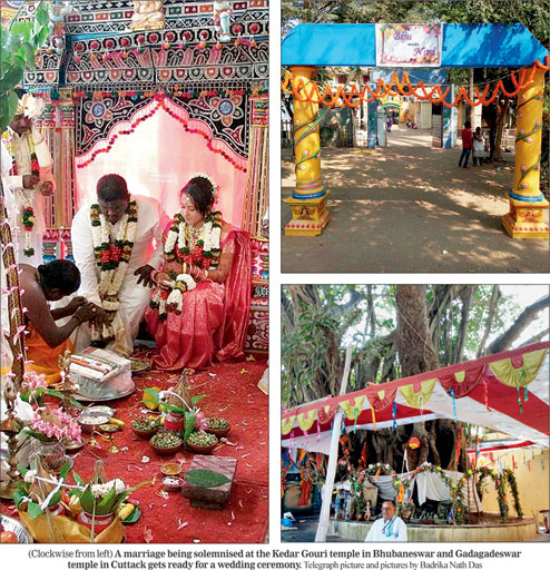 In Bhubaneswar, marriages are solemnised at Vishnu Mandir and Arya Samaj at Saheed Nagar, Kali Temple at Baramunda, Kedar Gouri temple at Old Town and so on. All these temples have witnessed a spike in bookings for marriage functions and are booked till December 15.