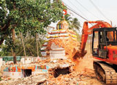 | A temple being razed as part of the civic body’s eviction drive in Cuttack on Tuesday. Picture by Badrika Nath Das |