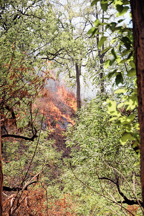 Most of the forest fires are man made. It is caused when people light fire to clean the surface of the forest to collect mohua or during the plucking of tendu leaves. The fire eventually spreads in the forest. The Bagdunguri teak forest under the Loisingha range has been burning since Sunday. Teak trees worth lakhs of rupees have been destroyed. Villagers of nearby Sahajchhapar said forest fire had become a routine affair. "Many intentionally set the fire to steal mohua flowers from the forest or smuggle timbers from the Bagdunguri forest," said villager Umakanta Bag.