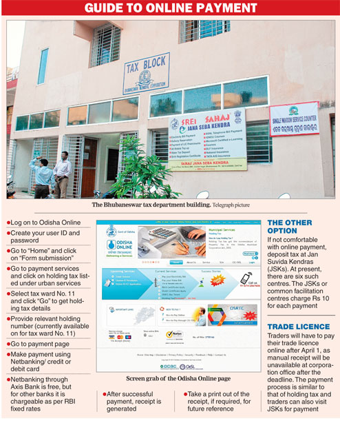 Bhubaneswar, March 10: With the launch of the online payment of holding tax yesterday in tax ward No. 11, the civic body aims to cover all other 14 wards and then monitor the defaulters and penalise them.