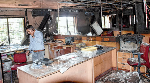 A number of documents, computers and other equipment were destroyed in the fire at the bank that functions as a cheque clearance centre. Fire officials said the cost of the gutted property would be more than Rs 10 lakh.