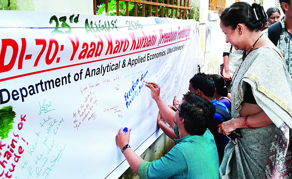 A number of universities across the state observed Freedom Fortnight from August 9 to August 23. The Freedom Fortnight, or Azadi 70-Yaad Karo Kurbani, is a national campaign promoted by the Union government and the University Grants Commission (UGC) to create and spread awareness about the sacrifices made by our freedom fighters. Students organised a number of activities during the fortnight at various government and private varsities. Several institutions witnessed mass songs on the concluding day.