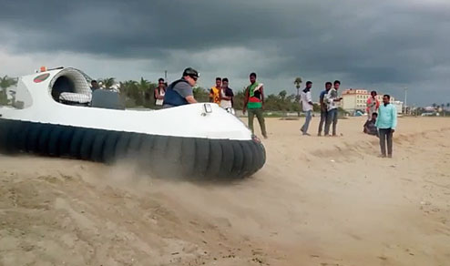 The test run of the hovercraft was conducted yesterday. It is capable of travelling both on land and water.