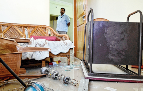 | The guest house of Nilachal Ispat Nigam Limited ransacked by job aspirants. Picture by Ashwinee Pati |