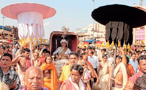 The king of Puri goes on a royal ride from his palace to the Lord's chariots every year in a palanquin carried by 15 sturdy men. These men speak with pride of being chosen to perform this ritual, which is a throwback to medieval times.