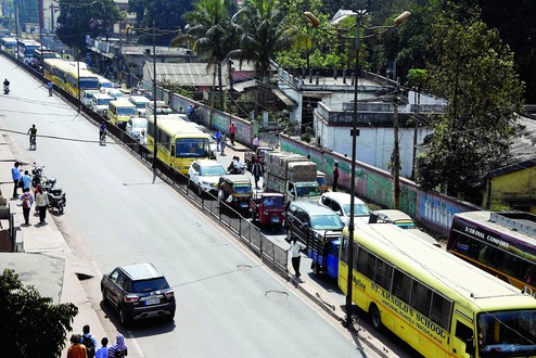 Schools, colleges, buses and ambulances were exempted from the strike. Scores of long distance buses, trucks, and other four-wheelers were, however, found stranded on either side of the bridge. Only the two-wheelers were allowed to ply through the roadblock.