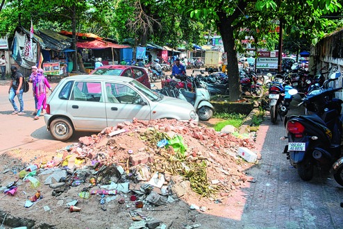 Problems are particularly acute for those living on the stretch of the main road between Sriya Square and HHI Square. The footpath on this stretch has almost been eaten up by encroachers, while the width of the main road has reduced to almost half its original size because of haphazard roadside parking. To add to all this, the area also reels from poor sanitation and there are not enough dustbins in proper shape.