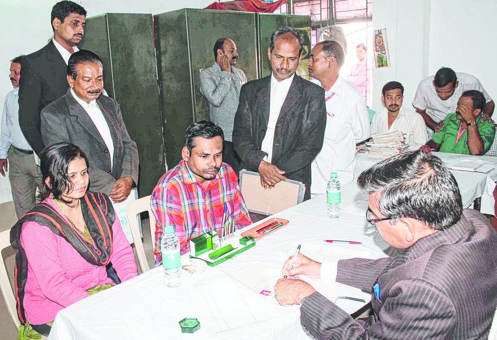 Conciliation session in progress at the National Lok Adalat in Cuttack.Picture by Badrika Nath Das