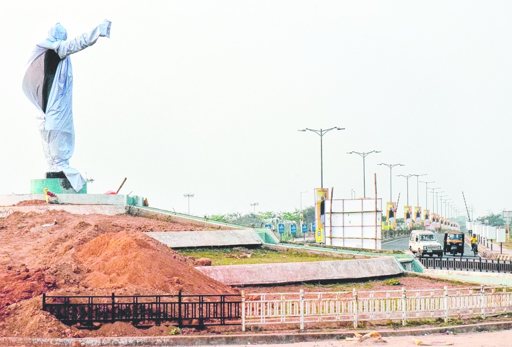 However, inordinate delay in unveiling the structure has ruled out that possibility. The 18-feet statue will be present, but under cover. The structure will be unveiled by chief minister Naveen Patnaik on his father's birth centenary on March 5.