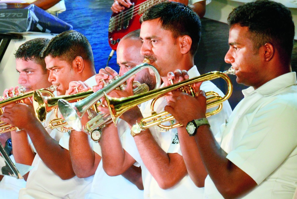 The one-hour performance showcased the prowess of the naval musicians who performed a wide genre of music that catered to the tastes of the audience. The band played military tunes such as Tri-Services Marching Medley blending it with Saare jahan se achha. They played Jai Ho from the movie Slumdog Millionaire and Kal Ho Na Ho from the movie of the same name.