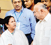 | Bengal chief minister Mamata Banerjee with Union home minister Sushil Kumar Shinde in Calcutta on Wednesday. (PTI) |