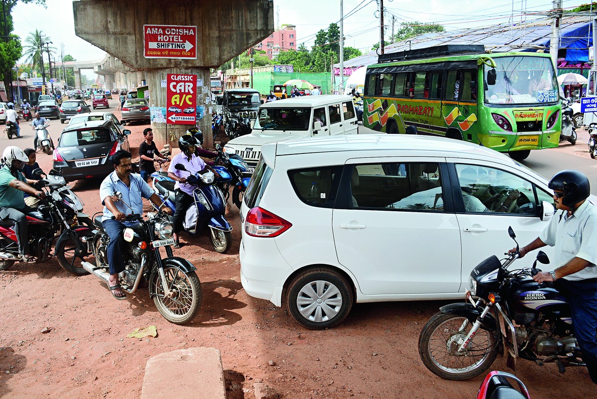 Bhubaneswar: Slow pace of work on the upcoming overbridge in Bomikhal has inconvenienced residents as they negotiate heavy traffic and bumpy stretches due to the absence of alternative roads site of construction.