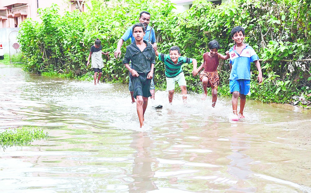 Splash joy for kids in wastewater flood