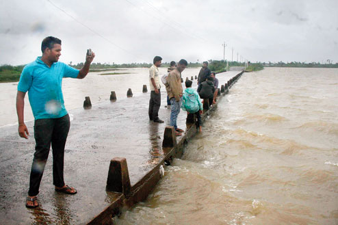 Youngsters brave storm for rare experience - Police evacuate crowd from beaches in Odisha after cyclone hits Visakhapatnam