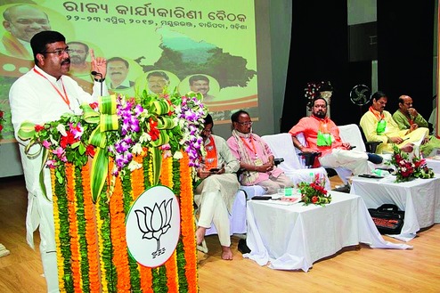 Candidates and their supporters campaign at Utkal University in Bhubaneswar. Picture by Ashwinee Pati