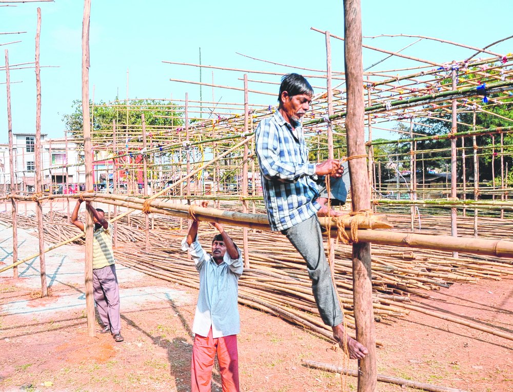 Work on jatra pandals begins - Magha mela at Khandagiri to start on January 26