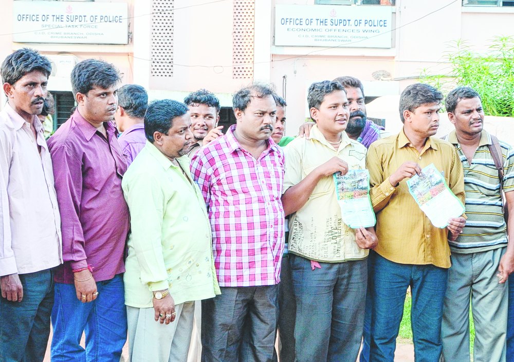 File picture of depositors protesting in front of the economic offences wing demanding action against Flourish India Limited in Bhubaneswar