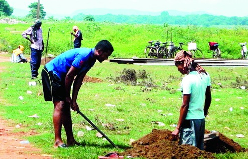 Workers level the Bali yatra venue in Cuttack on Sunday. Picture by Badrika Nath Das